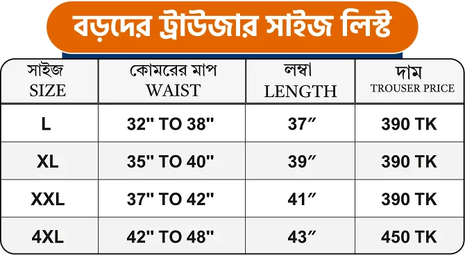 ✨বড়দের (4XL) সাইজ – ৪৫০ টাকা